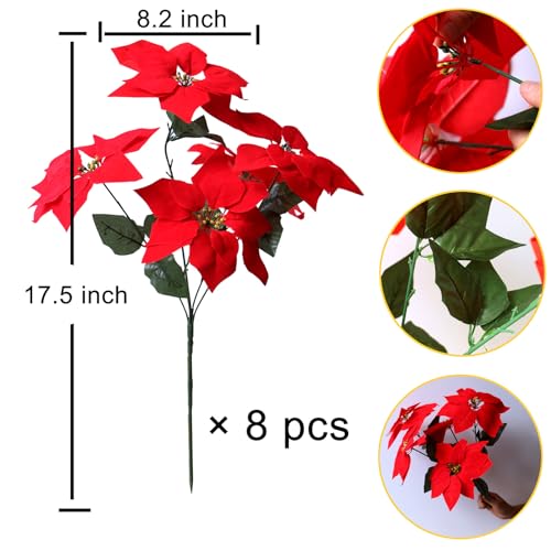 - تتضمن العبوة 8 قطع من باقات زهور البوينسيتيا الصناعية (5 سيقان/لكل باقة) مع إجمالي 40 قطعة من زهور البوينسيتيا الحمراء (5 قطع/لكل باقة). الطول: حوالي 17.7 انش؛ قطر رأس الزهرة حوالي: 20 سم/8.2 انش.