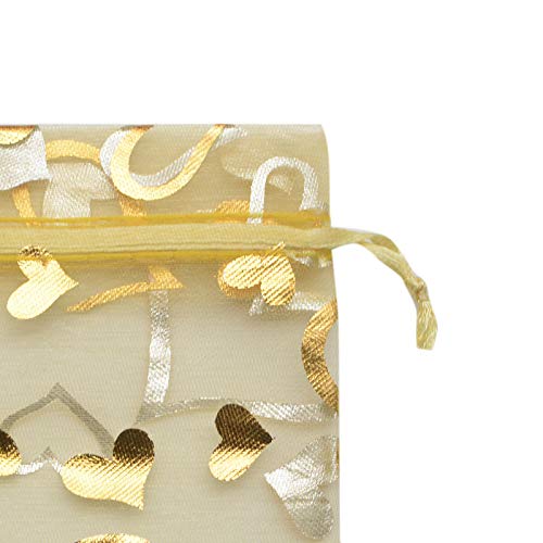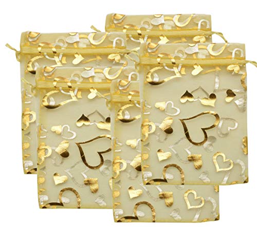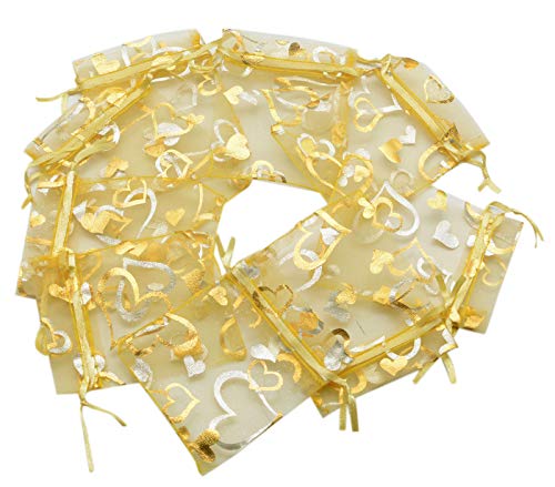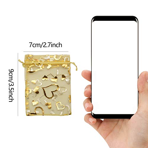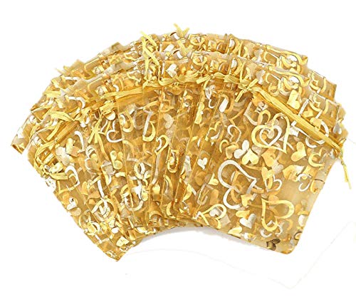 YYaaloa - يياالوا 100 قطعة من اكياس الاورجانزا الصغيرة الشفافة المختلطة على شكل قلب 7 × 9 سم - 2.7 3.5 انش شنط تجميل انيقة برباط سحب هدايا الزفاف والحلوى والمجوهرات ذهبي 2.7 3.5 واي يالوا