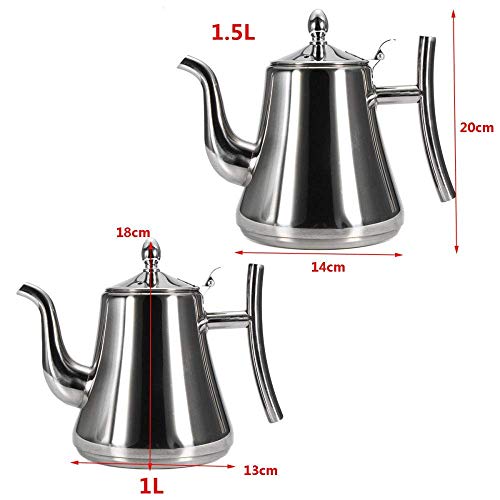 YYAI-HHJU - إبريق قهوة موكا من الفولاذ المقاوم للصدأ بيد ياي- إتش جيه يو مكبس الفرنسي سعة 1 لتر - 1.5 غلاية بفلتر وبيد 1500 مل ستانلس ستيل فضي