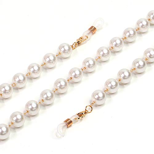 YYHJM - سلسلة نظارة شمسية من اللؤلؤ الأبيض سلسلة حامل نظارة شمسية قلادة سلسلة الحبل للنساء لفتاة