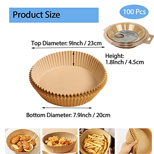 YYJ HOME - ورق زبدة دائري امن للمقلاة الهوائية 20 سم للاستعمال مرة واحدة للخبز والتحميص والميكروويف، 100 قطعة