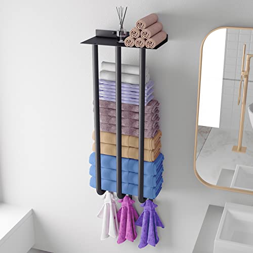 YYP - واي واي بي رف مناشف يثبت على الحائط، رفوف مناشف معدنية جديدة مطورة 3 بار للحمام، رف مناشف الحمام مع رف معدني بسعة تخزين كبيرة و3 خطافات، سهل التركيب لتخزين مناشف الحمام، اسود 27