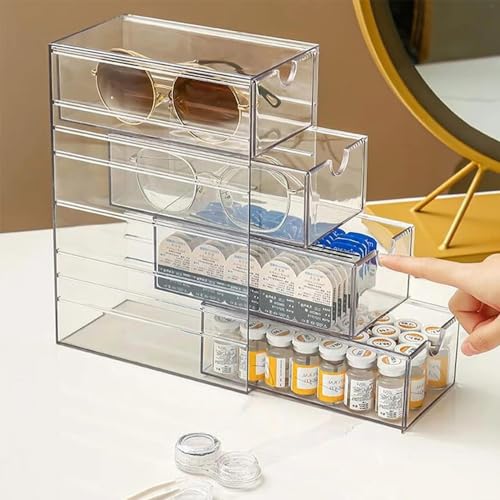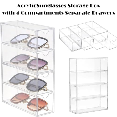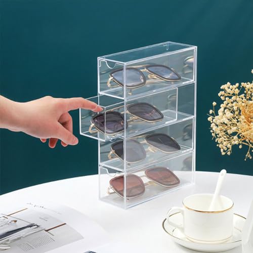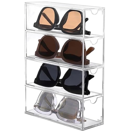 YZDZSW - منظم نظارات شمس أكريليك قابل للتكديس للنظارات الشمسية مع 4 أدراج، منظم نظارات من الأكريليك لنظارات الشمس والساعات ومستحضرات التجميل والمجوهرات والنظارات الشمسية من YZDZSW