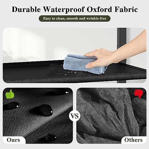 - 【ثابت ومتين】رف الأحذية مدعوم بألواح متينة وإطارات معدنية، والأرفف القماشية مصنوعة من قماش اوكسفورد السميك المقاوم للماء، وقدرة تحمل جيدة جدًا، لذلك يمكنك استخدامها لفترة أطول.