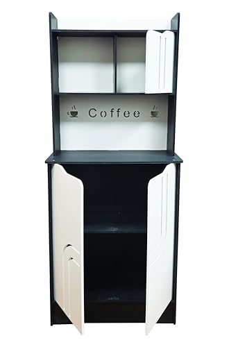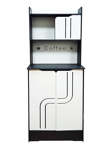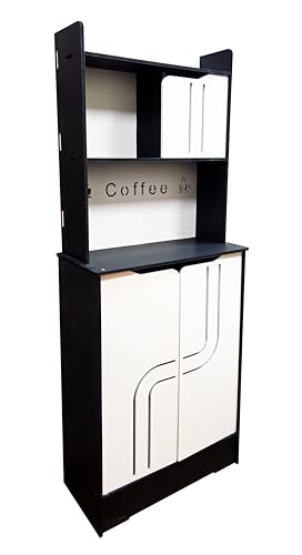 Z ZELTA - طاولة قهوة وبار من زد زيلتا، حامل ماكينة القهوة مع خزانة تخزين لغرفة المعيشة والمطبخ وغرفة الطعام والمكتب، هيكل من البلاستيك الفوم، تصميم عصري باللونين الاسود والابيض