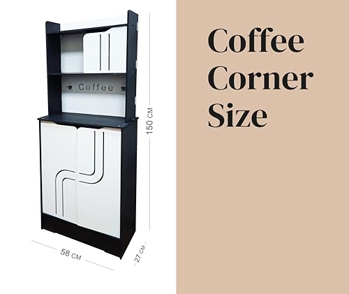 - مساحة تخزين واسعة: تتضمن خزانة تخزين لتنظيم أساسيات القهوة والأكواب وغيرها من الأشياء بدقة.
