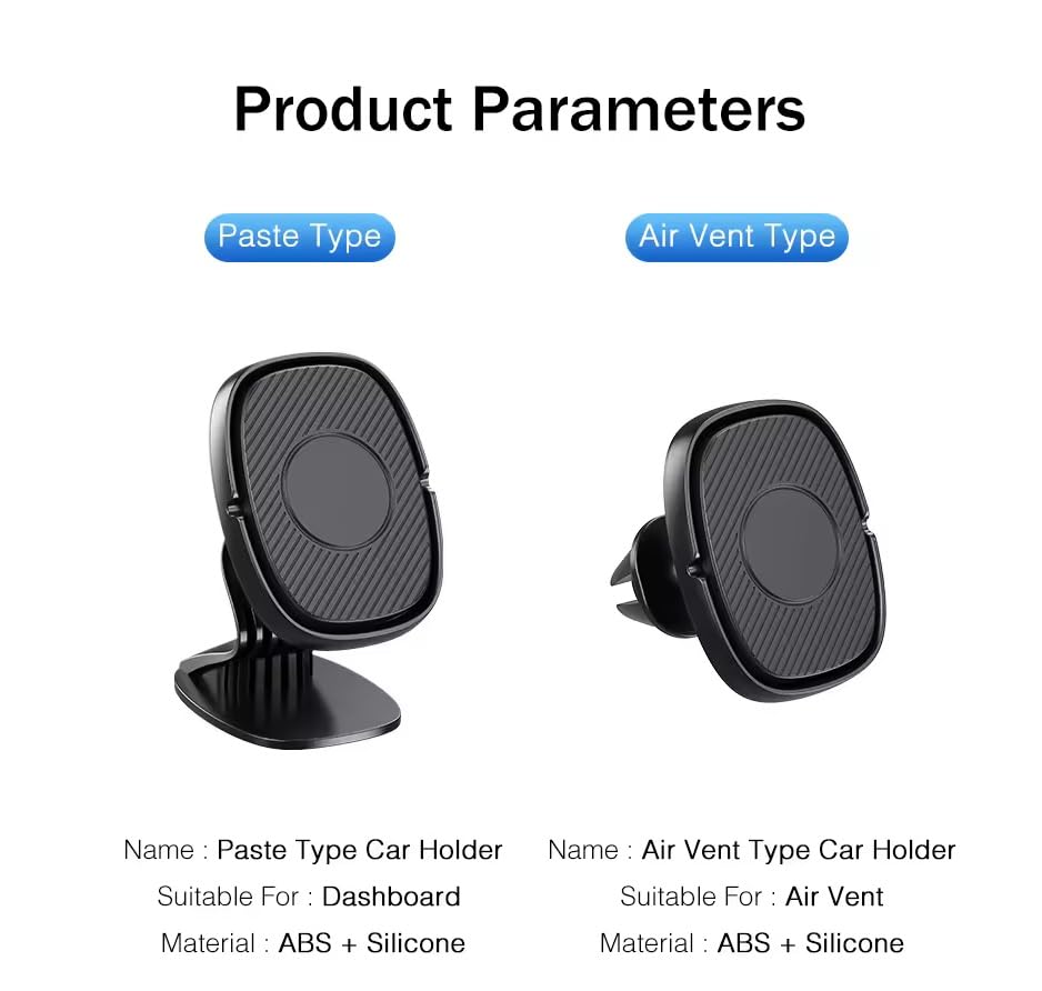 - حامل تصميم متين قابل للتثبيت على فتحات مكيف السيارة أو التابلوه باستخدام مشبك قابل للتعديل