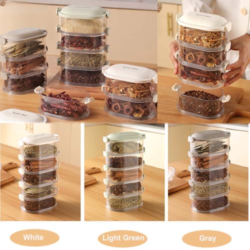 ZAAWUUT - صندوق تخزين توابل مانع للتسرب وآمن للتجميد، علب حبوب بأغطية سهلة القفل لتنظيم مخزن المطبخ من زاووت (رمادي، خمس طبقات)