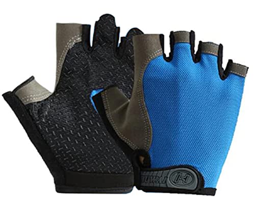 Zacharias - جوانتي نصف إصبع للجنسين من زكرياز واقي من الشمس ومضاد للانزلاق ومزود بمسامات للتهوية، جوانتي نحيف بدون أصابع لركوب الدراجات واللياقة البدنية والرياضات الخارجية، bg-03 (لون أزرق)