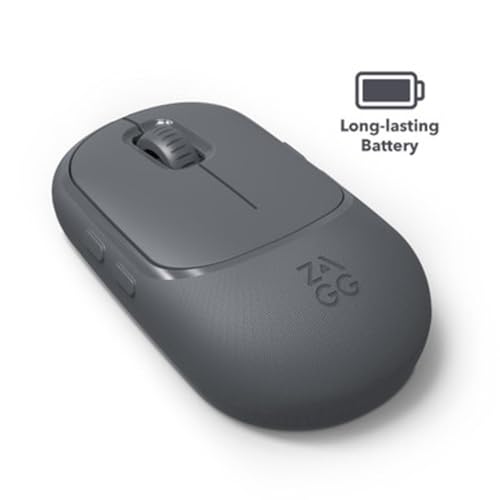 ZAGG - ماوس احترافي عالمي مع لوحة شحن لاسلكية من زاج، بدون بطاريات، يشحن عند الاستخدام، لون رصاصي