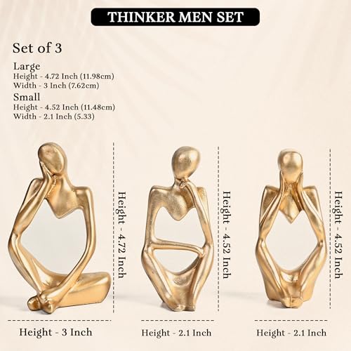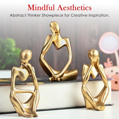ZAICUS - مجسم مفكر تجريدي ذهبي، قطعة فنية عصرية لديكور المنزل لغرفة المعيشة وغرفة النوم والمكتب ورف الكتب قطعة مركزية للطاولة من زدكوس، من 3 قطع، ذهبي
