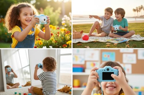 - الوظيفية: بالإضافة إلى التقاط الصور وتسجيل مقاطع الفيديو (غالبًا بدقة 1080 بيكسل HD عالية الدقة)، تتضمن هذه الكاميرات في كثير من الأحيان ميزات مدمجة مثل الألعاب المصغرة وإطارات الصور الكرتونية المختلفة والفلاتر ووظائف MP3 لتعزيز المرح الإبداعي.