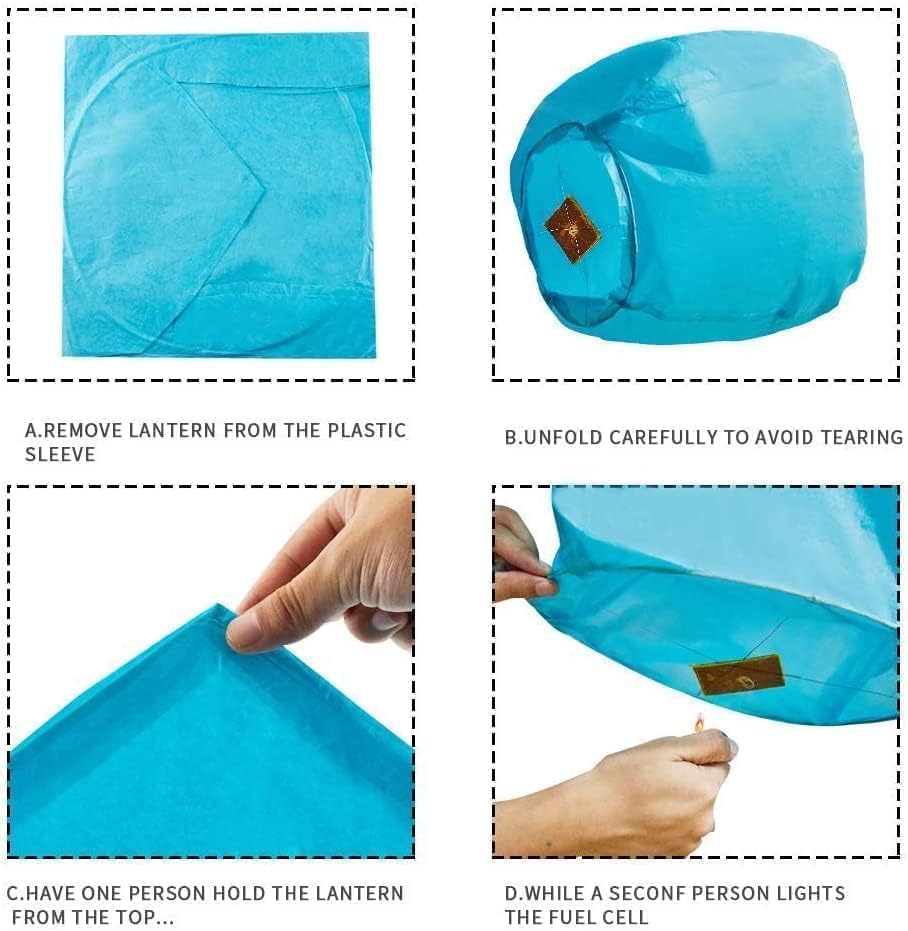 - تحذير - يرجى التحقق من القوانين المحلية قبل الشراء للتأكد من إمكانية استخدامها بشكل قانوني. تجنب استخدامه في الرياح القوية وتجنب استخدامه في المباني الكثيفة. يجب اتباع التعليمات. يجب أن يكون الأطفال تحت إشراف الكبار. لا يمكن استخدام الفوانيس الصينية إلا مع خلية الوقود المرفقة. لا تحاول استبدالها بأشياء أخرى قابلة للاشتعال.