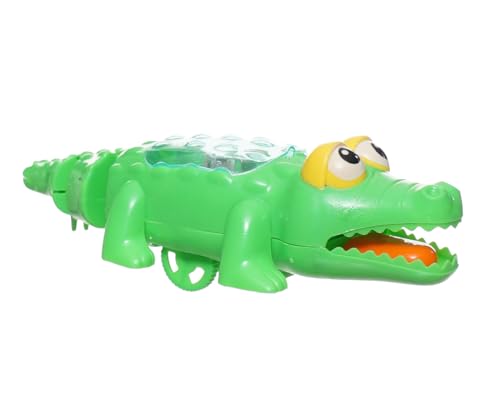 Generic - لعبة تمساح بزمبلك للأطفال تصميم جذاب وآمن يتحرك ويصدر ضوء عند سحب الحبل ، اخضر 3546-70