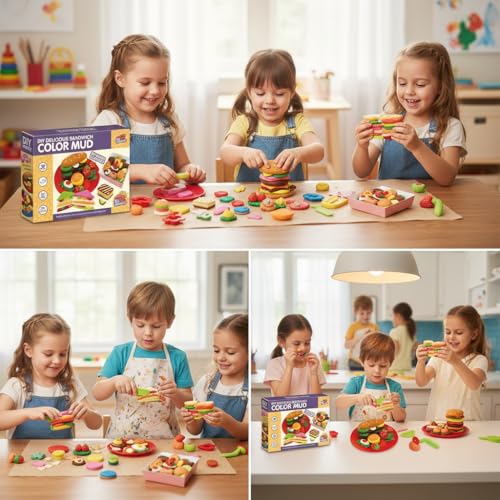 - مجموعة لعب كاملة: تتضمن ألوانًا متعددة من مركب التشكيل وأدوات لإنشاء تصميمات ومجموعات ساندويتش خيالية.