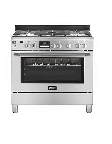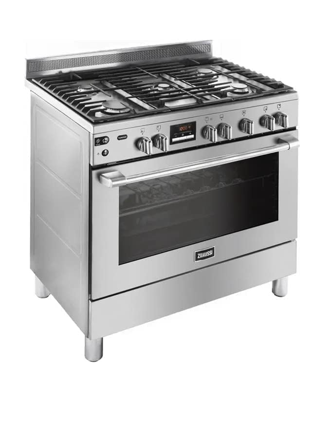 Zanussi - بوتجاز غاز قائم بذاته من زانوسي تيست ماكس 5 شعلات - شاشة رقمية كبيرة - ستانلس ستيل مصقول - فرن غاز - حوامل حديد صلب - مروحة تبريد - ZCG92696XA