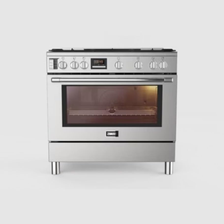 Zanussi - بوتاجاز قلاية هوائية 90 سم تيستيماكس، فولاذ مقاوم للصدأ، 5 شعلات، مقبض متعدد الوظائف، فضي وأسود، ZCG97326XA من زانوسي