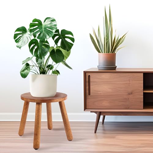 zaowofires - مقعد خشبي صلب دائري مناسب كمقعد للحديقة وكرسي صغير للحمام وحامل للنباتات بأرجل خشبية قابلة للفصل للمطبخ والحمام وغرفة النوم وغرفة المعيشة من زاو فايرز - (لون خشب الجوز، مقاس 30 سم × 30 سم)