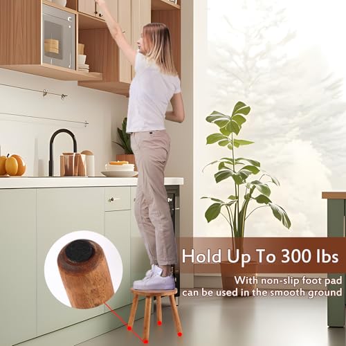 - 【مقعد خشبي صلب】هذا المقعد الخشبي الدائري مصنوع من خشب المطاط الصلب الطبيعي، وهو صحي وصديق للبيئة. المقعد ليس من السهل تشويهه وهو متين. يمكن للمقعد الخشبي الصغير أن يتحمل وزنًا يصل إلى 136 كجم.