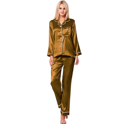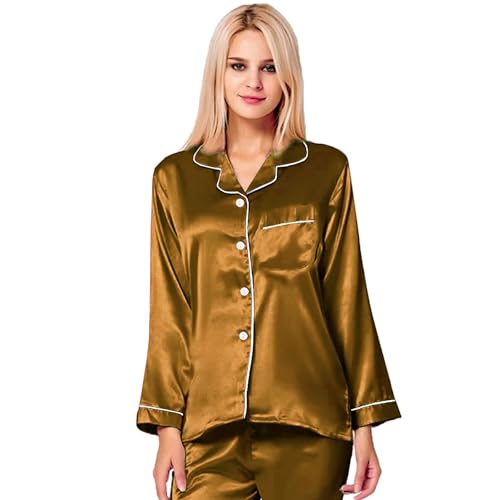 GAMAL SONS FOR ABAYA - طقم بيجامة لانجري من قطعتين من زارير، مصنوع من الساتان والدانتيل والشيفون للعبايات (GS-) 0178 بيرنت (جملي)