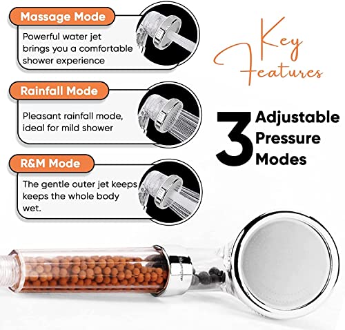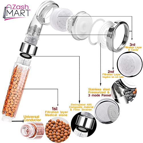 ZASHMART - رأس دش من زاشمارت، 3 أوضاع ضغط عالي موفر للماء، رأس دش بفلتر مياه يزيد من ضغط المياه مع خرز دش منعم للمياه.
