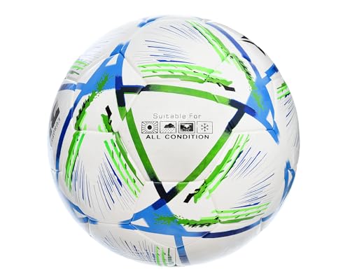 - مقاس الكرة الرسمي: 5 تم تصميم كرة القدم هذه لتلبية معايير المقاس 5 الرسمية، مما يجعلها مناسبة للاستخدام في المباريات الاحترافية والبطولات واللعب التنافسي.