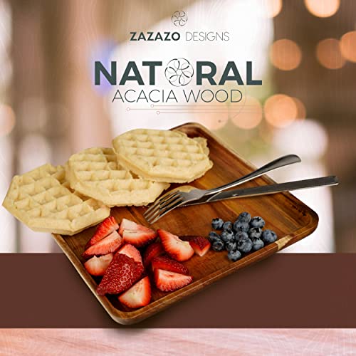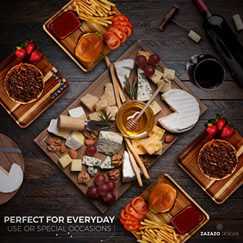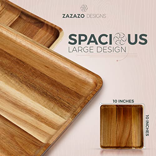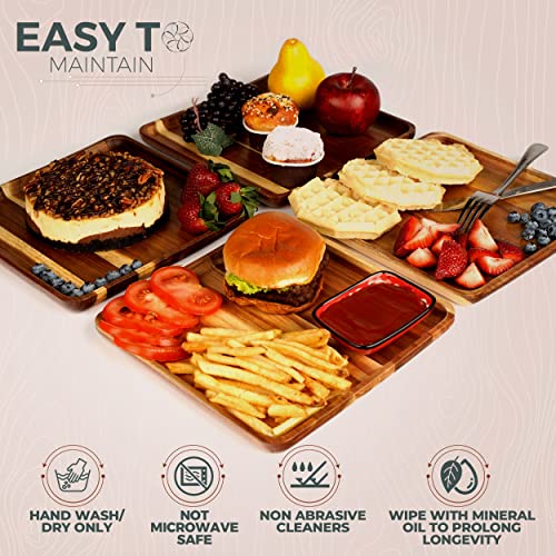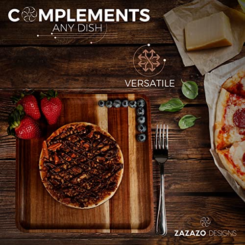 Zazazo Designs - طقم أطباق عشاء مربعة من خشب اكاسيا مكون من 4 قطع من زازازو ديزاينز- مقاس كبير L، 25 سم طبق خشبي للوجبات، والحلويات، ويمكن استخدامه كطبق أساسي، وكصينية تقديم. سهل التنظيف وقابل لإعادة الاستخدام