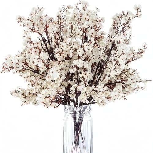 ZBELLO - 10 قطع زهور صناعية طويلة الجذع للمزهريات الطويلة، سيقان زهور الياسمين الصناعية الشتوية 19.3 انش للمنزل والمطبخ وديكور حفلات الزفاف من زيبيلو (اوف وايت)