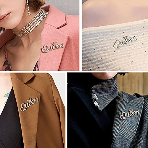 ZC.FLY - دبابيس بروش على شكل تاج ملكة للنساء من زد سي فلاي، دبابيس عصرية فاخرة مرصعة بحجر الراين، دبابيس مجوهرات اكسسوارات للملابس والفساتين، احجار كريمة فضية، كريستال، عبوة من قطعتين