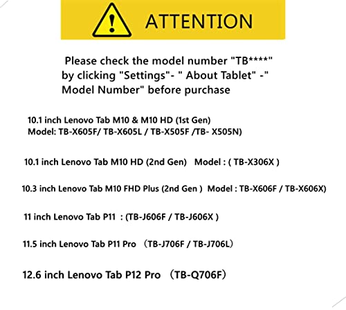 - حافظة لجهاز لينوفو تاب M10 HD بحجم 10.1 بوصة (الجيل الثاني) فقط (رقم الموديل: TB-X306X). لا تناسب أي موديلات أخرى. يرجى التحقق من رقم الموديل "TB****" بالضغط على "الإعدادات" ثم " حول التابلت" ثم رقم الموديل: قبل الشراء.