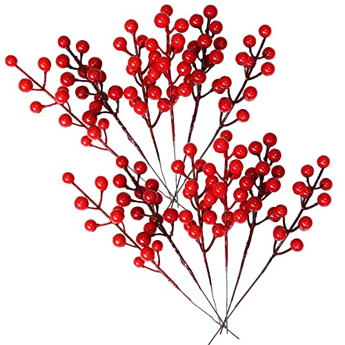 ZDNT - التوت الأحمر للكريسماس من زد دي ان تي فروع الإصطناعي زينة شجرة الكريسماس إكليل الزهور ديكورات الحرف اليدوية فاكهة حمراء حسب الفروع 12 قطعة
