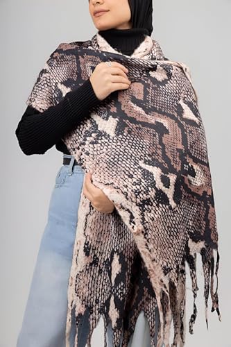 Generic - شال حمار وحشي - وشاح فاخر بنمط حمار وحشي يتميز بدرجات اللون البني والاسود الجريئة وحواف بشراشيب ولف متعدد الاستخدامات للملابس النهارية والليلية، مما يرفع من أي مظهر عصري.