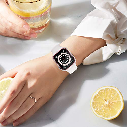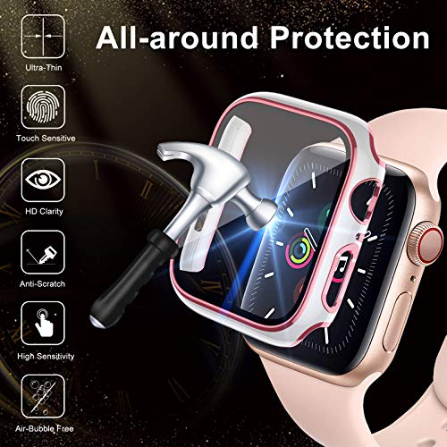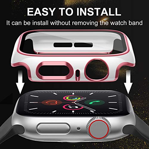 ZEBRE - زيبري جراب متوافق مع شاشة حماية لساعة ابل 40 ملم، جراب حماية صلب من البولي كربونات مع شاشة حماية HD من الزجاج المقوى متوافق مع اي ووتش اس اي سلسلة 6/5/4، ابيض/وردي بينك، تيمبرد جلاس