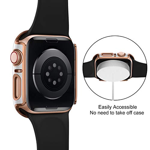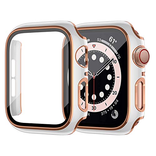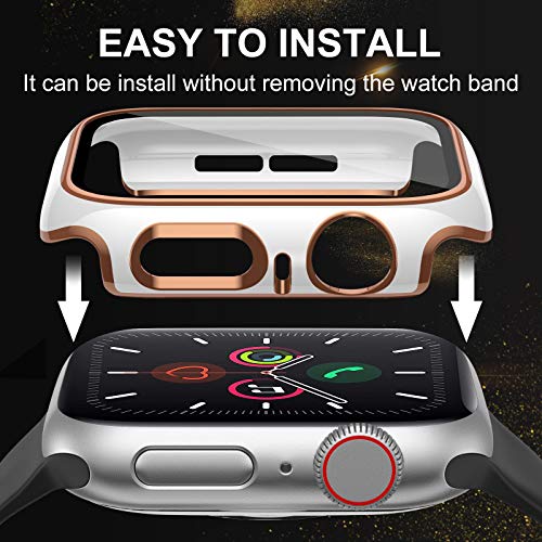 ZEBRE - جراب صلب من البولي كربونات من زيبر متوافق مع ساعة ابل 44 ملم، سلسلة 6/5/4/SE، شاشة حماية من الزجاج المقوى مدمجة، غطاء شفاف HD عالي الدقة للنساء والرجال، ابيض/ روز جولد، زجاج مقسى