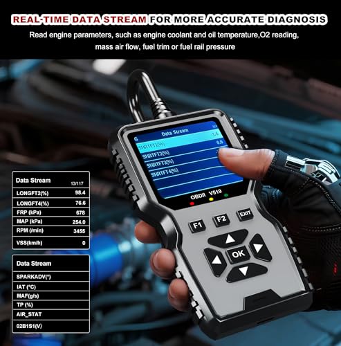 - ماسح ضوئي كامل لأوضاع OBDII للسيارة: V519 هو ماسح ضوئي احترافي للسيارة مجهز بجميع وظائف OBD2 الضرورية. يمكنه قراءة الرموز ومسحها، وإيقاف تشغيل ضوء المحرك أو MIL، وعرض بيانات إطار التجميد، والتحقق من جاهزية I/M، واسترداد رقم تعريف المركبة، واختبار جهد البطارية، وعرض تدفق البيانات المباشرة مع الرسوم البيانية، ويحتوي على 35901 وحدة تشخيص التشخيص المدمجة، وإجراء اختبارات مستشعر O2، وتمكين وضع المراقبة الداخلية، وإجراء اختبار المكونات