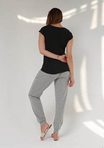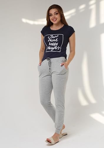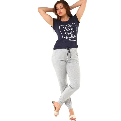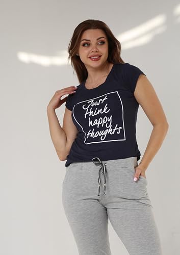 ZECOTEX - بيجامة للنساء من زيكو تيكس، بيجامة منزلية للارتداء في الصيف بنصف كم مع بنطال بنمط مطبوع من الفسكوز, أزرق داكن, M
