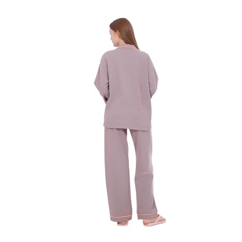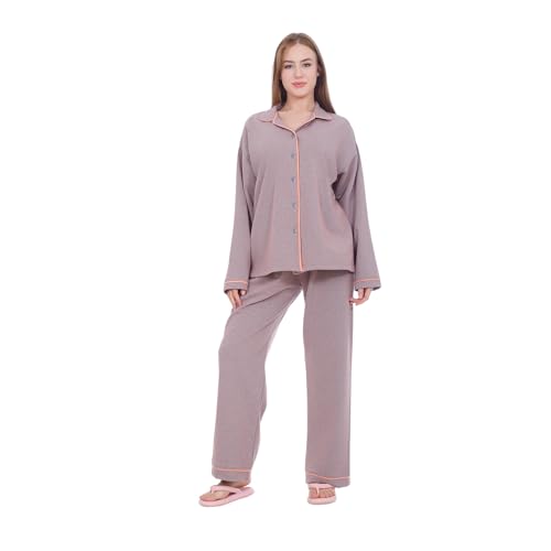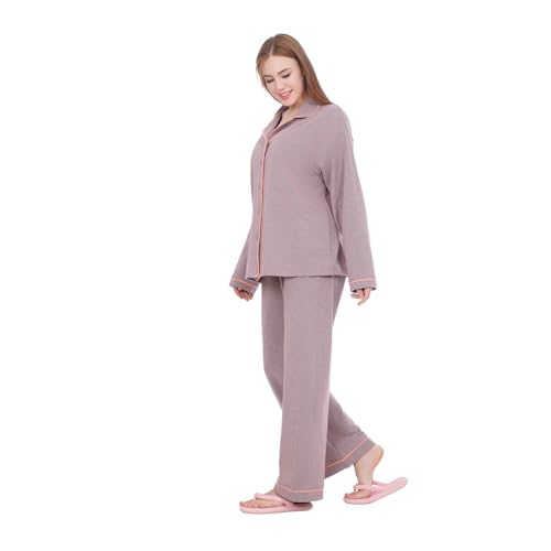 ZECOTEX - بيجامة ميلتون قطن شتوية كلاسيكية من جاكيت بأزرار مريحة للنساء للمنزل من زيكوتكس