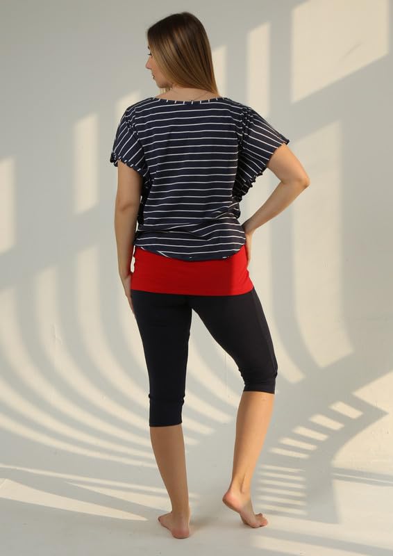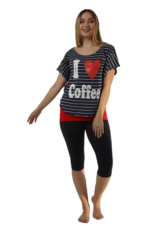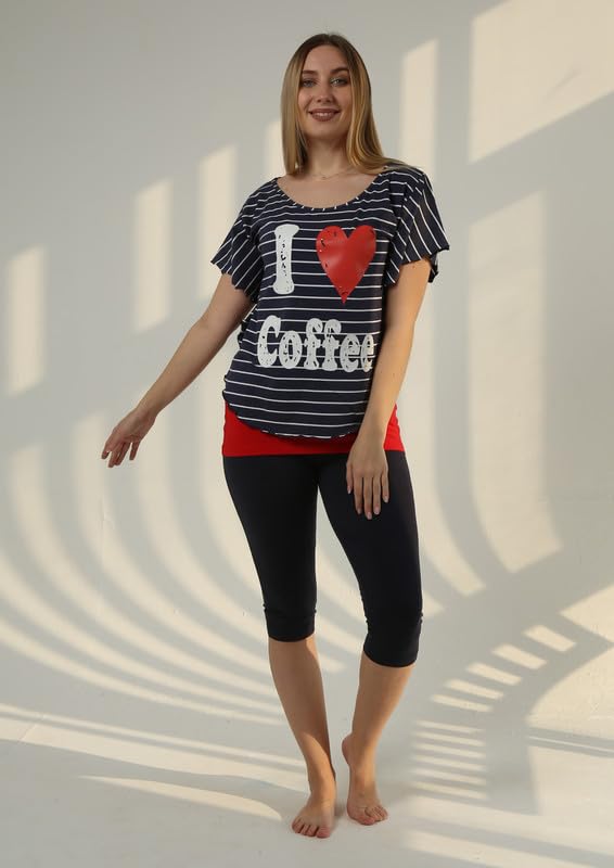 ZECOTEX - زدكوتكس بيجامة مميزة بنصف كم وبنطلون برمودا للنساء مقاس XS احمر