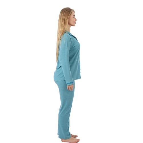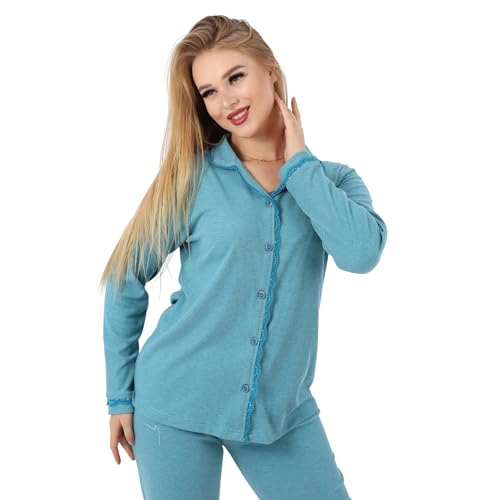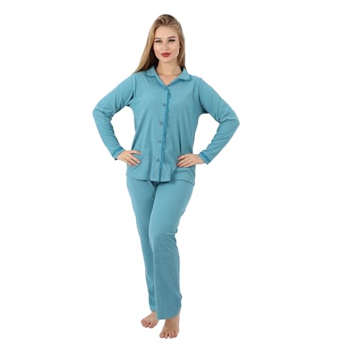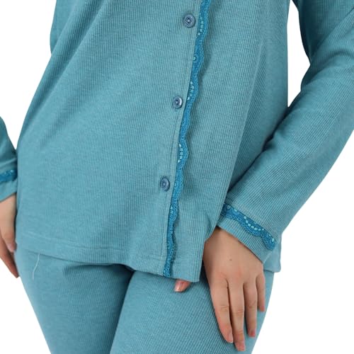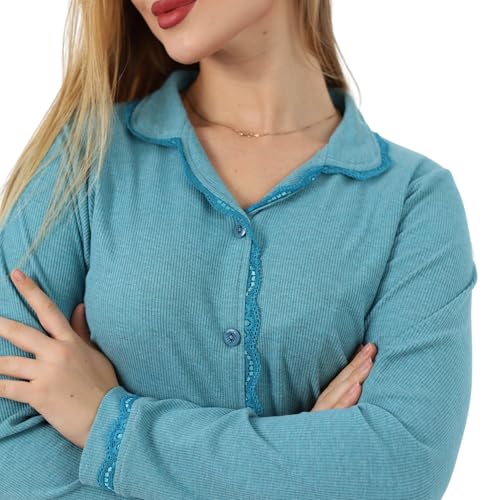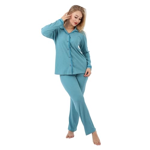 ZECOTEX - زدكوتكس طقم بيجامة كلاسيكي من القطن المضلع للنساء | بلوزة باكمام طويلة وازرار مع بنطلون كامل الطول | ملابس نوم ناعمة وجيدة التهوية | مقاسات S-3XL
