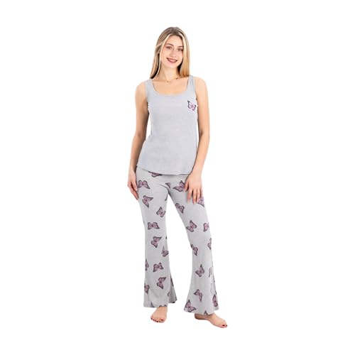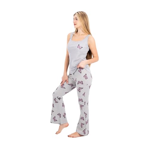 ZECOTEX - ZECOTEX Women's Pajama Set | Sleeveless Ribbed Tank Top with Butterfly Print Pants | Soft Cotton Loungewear | Grey, S to XL