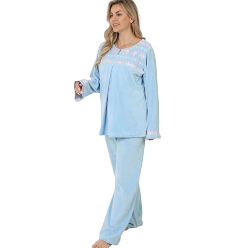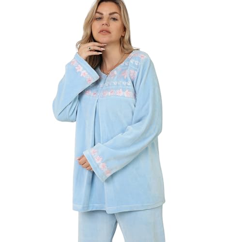 ZECOTEX - طقم بيجامة قطيفة للنساء، ملابس نوم شتوية مطرزة ناعمة، قطيفة شتوية للنساء مقاس كبير بيج سايز، ملابس منزلية دافئة ومريحة من زدكوتكس