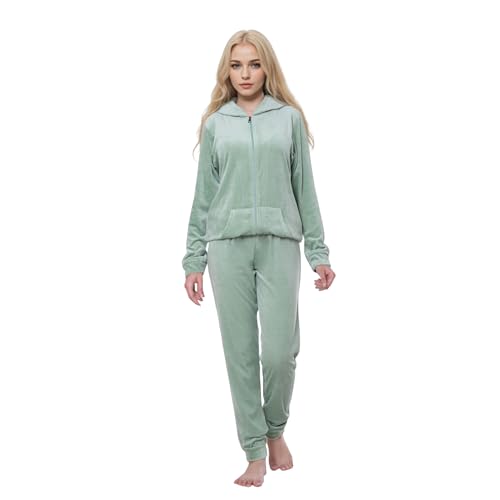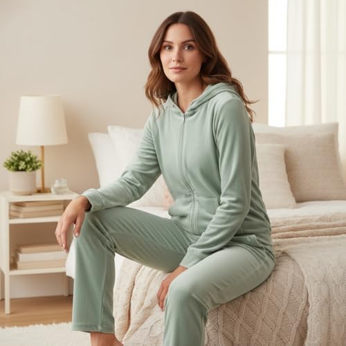 ZECOTEX - بيجامة شتوية للنساء من القطيفة القطنية مع سوستة ورداء بيجامة للنساء شتوية فخمة من القطيفة القطنية الناعمة طقم من زيكوتكس قطعتان