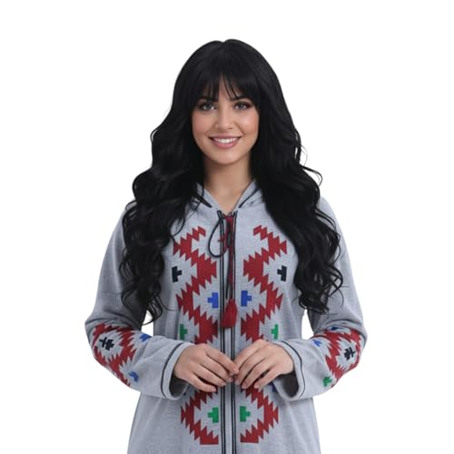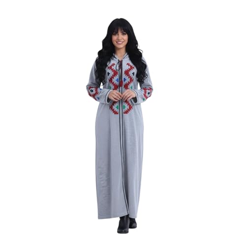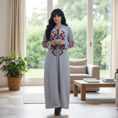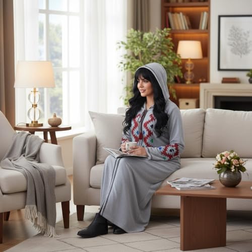 ZECOTEX - زدكوتكس عباية نوم مخملية شتوية للنساء | فستان نوم طويل مطرز مع تطريز امامي واكمام | عباية قطيفة شتوية حريمي مطرزة من الامام الاكمام