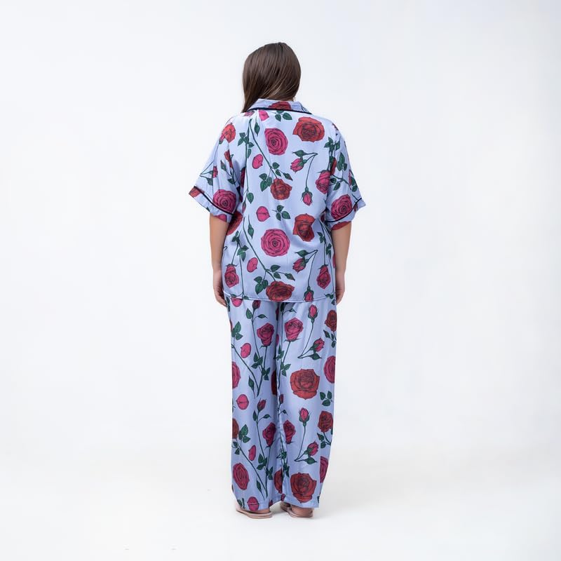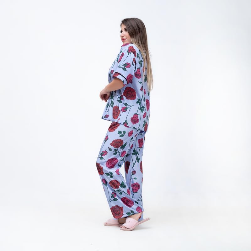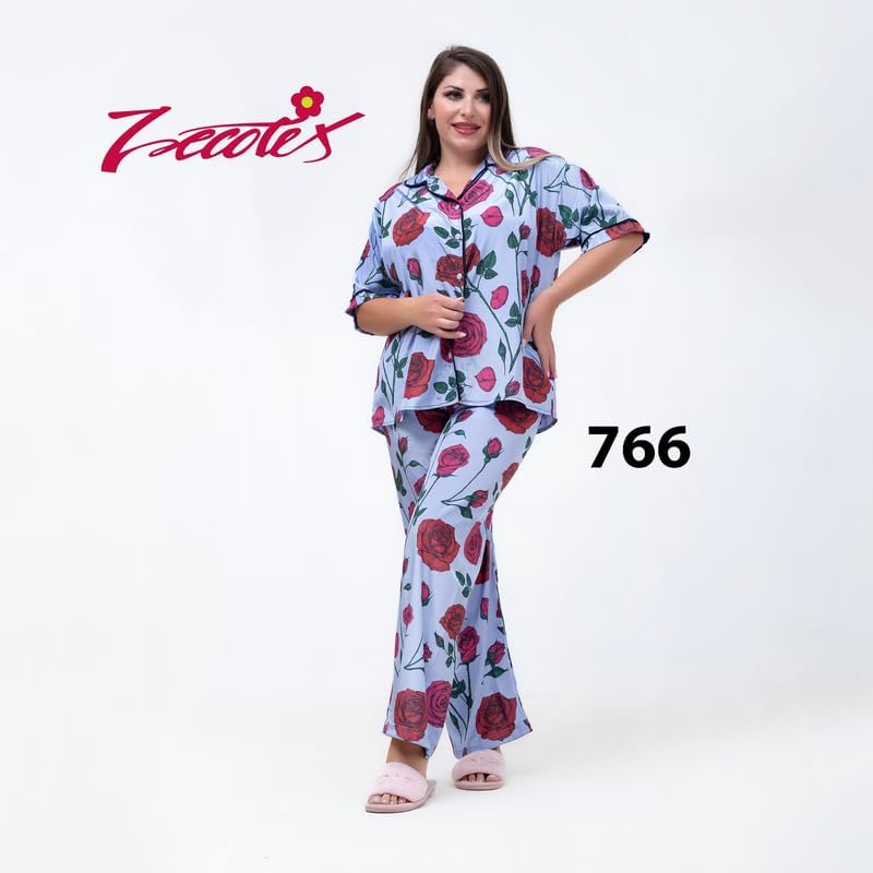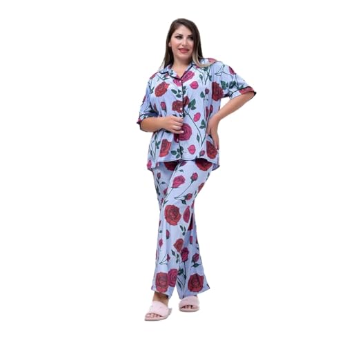 ZECOTEX - بيجامة ساتان صيفي من زدكوتكس مزينة بزهور ومزودة بأزرار