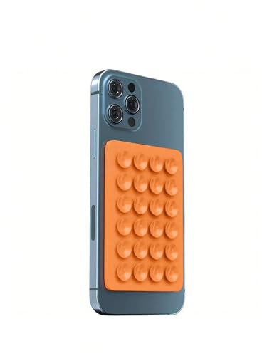 ZELLYA - حامل جراب موبايل بقواعد لاصقة سيليكون مع لاصق للتثبيت على الموبايل من زيليا (برتقالي)