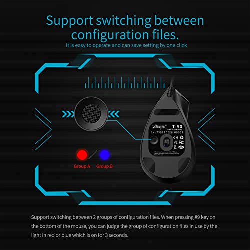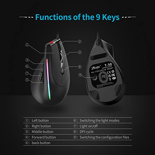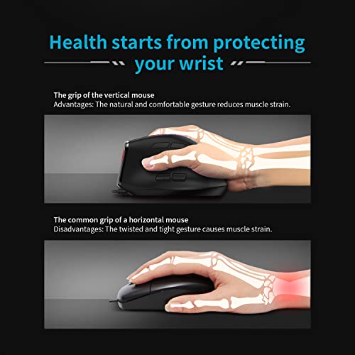 Zelotes - زيلوتس ماوس ضوئي سلكي عمودي بتصميم مريح 2021 بمنفذ USB واضاءة LED مع 6 ازرار و4 مستويات حساسية قابلة للتعديل 800/1200/2400/3200 نقطة لكل انش للكمبيوتر، اسود... (T50Wired)