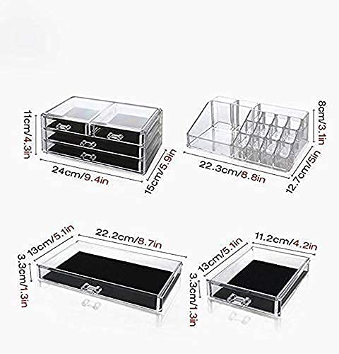 Zelvi - علبة تنظيم وتخزين مصنوعة من البلاستيك لمستحضرات التجميل والمكياج والمجوهرات وأحمر الشفاه، شفافة، مكونة من 4 أدراج من زيلفي، مقاس 22.5 × 13.8 × 18 سم