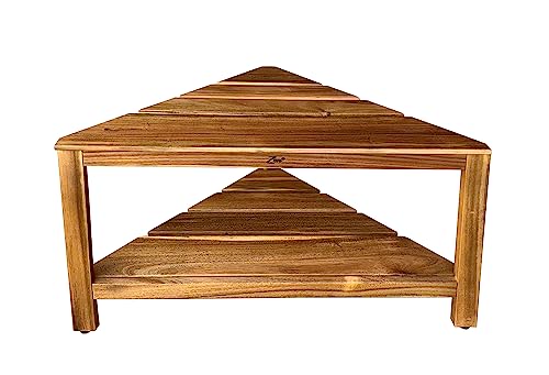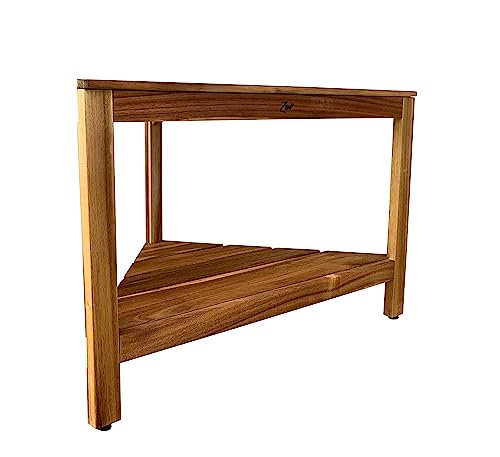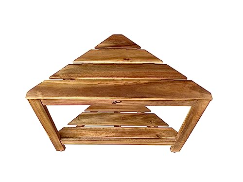 Zen - مقعد استحمام من خشب الاكاسيا بطول 56 سم وارتفاع 33 سم، متعدد الأغراض، مقعد استحمام - رف زاوية - مسند قدم للاستحمام - كرسي استحمام مع رف من زين