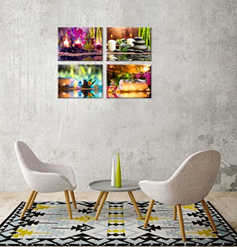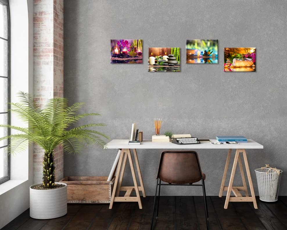 Generic - تابلوه حائط قماش برسمة علاجات المنتجعات الصحية ولوحات برسمة احجار ونباتات البامبو من زين، (مقاومة للماء، خطاف مثبت، سمك 1 بوصة)، متعدد الألوان