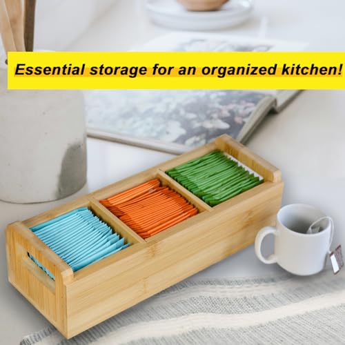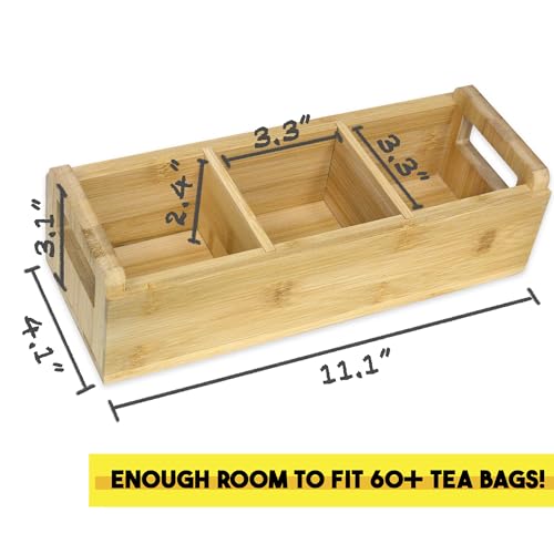 Zen Earth Inspired - صندوق منظم شاي من البامبو خالي من المواد الكيميائية وصديق للبيئة كبير وطويل وقابل للتعديل من الخشب الطبيعي من زين ايرث انسبتايرد، (3 خانات، غير مشطب)